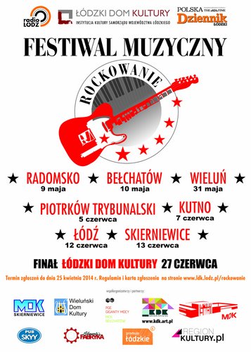 Wieluński Dom Kultury zaprasza na koncert w ramach II etapu przesłuchań rejonowych Festiwalu Muzycznego ROCKOWANIE. Eliminacje odbędą się 31 maja 2014 r. o godz. 14:00 w budynku Wieluńskiego Domu Kultury przy ul. Reformackiej 3 (dawny Dom Nauczyciela).