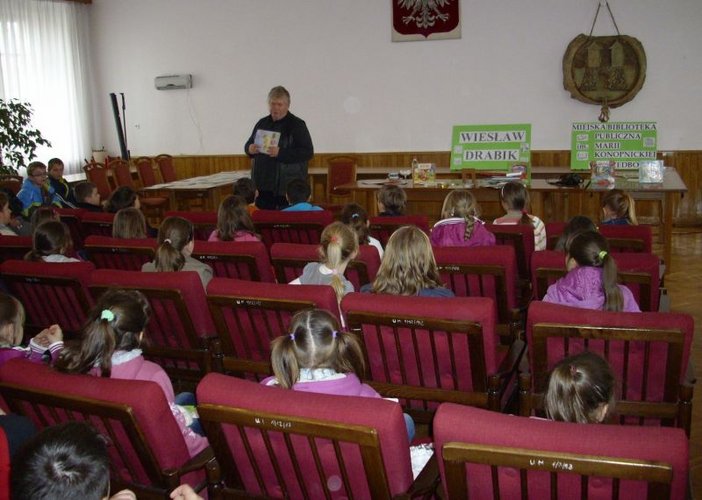 W dniu 12 kwietnia 2012 roku, o godzinie 10.30, w sali konferencyjnej Ratusza Miejskiego w Przedborzu, odbyło się spotkanie, zorganizowane przez Miejską Bibliotekę Publiczną im. Marii Konopnickiej w Przedborzu, z panem Wiesławem Drabikiem - autorem ponad 100 wesołych książeczek dla dzieci
