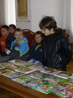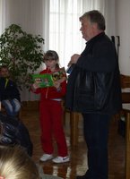 Na spotkanie z pisarzem przybyli uczniowie ze szkoły podstawowej i rodzice z młodszymi dziećmi. Na wstępie spotkania pan Wiesław Drabik w zabawny i żywy sposób opowiedział o sobie i o tym, jak powstawały jego książki: od pomysłu, poprzez drukarnię, aż do chwili, kiedy książka była gotowa, by trafić do rąk małego czytelnika. Pan Drabik czytał najśmieszniejsze fragmenty ze swoich książek i bawił się razem z dziećmi w wspólne odgadywanie rymowanych zakończeń zdań, podczas którego poprawne odpowiedzi nagradzał naklejkami i zakładkami, a za największą ilość uzbieranych przez dzieci naklejek, podarował książkę.