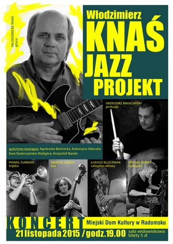 21 listopada o godz. 19.00 w sali widowiskowej Miejskiego Domu Kultury w Radomsku odbędzie się koncert jazzowy Włodzimierza Knasia. Artyście towarzyszyć będą: Michał Rorat (fortepian), Marcin Lamch (bas), Łukasz Kluczniak (saksofon altowy), Grzegorz Masłowski (perkusja) oraz Paweł Surman (trąbka). Muzycy zaprezentują autorski program Włodzimierza Knasia.