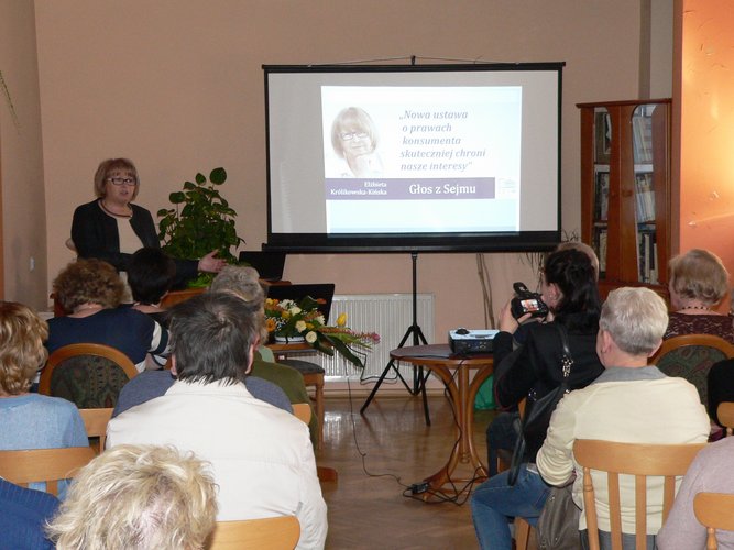 "Wszyscy jesteśmy konsumentami" - tak brzmiał temat spotkania poseł Elżbiety Królikowskiej-Kińskiej z mieszkańcami Koluszek, które odbyło się z inicjatywy Akademii Wieku Dojrzałego prowadzonej przez Miejską Bibliotekę Publiczną w Koluszkach.