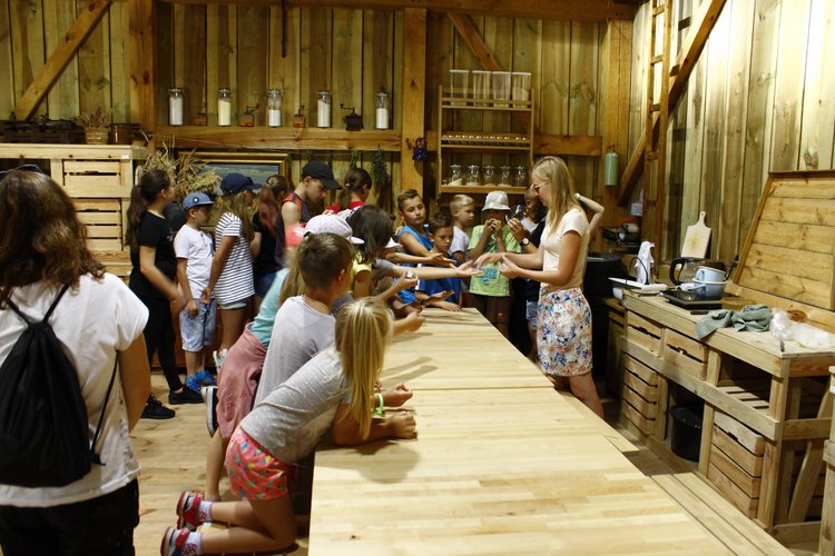 Podczas wizyty w jednym z najpiękniejszych Ogrodów Polski dzieci wzięły udział w warsztatach dotyczących ekologii na wiejskim podwórku oraz tworzyły własne mydła. Fot. Rafał Śliwa Piotr Rybak info@mdkradomsko.pl