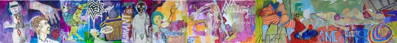 Prezentowany cykl prac to graficzny dziennik składający się z kilkunastu obrazów. Każdy mierzy jeden metr wysokości. Prezentuję je w jednym ciągu. Założeniem jest to, by poszczególne moduły mogły istnieć jako osobne obrazy. Wykorzystuje różne techniki malarskie, rysunkowe, a także collage. Stosuję mocne kolory, często kontrastując je ze sobą. Wielokrotnie wykorzystuję przypadek, który staje się początkiem dalszego działania. Oprócz przypadku malarstwo swoje opieram na tekście, który wkomponowuje w obraz. Są to słowa, zdania zasłyszane, przeczytane, które często są impulsem do stworzenia obrazu.