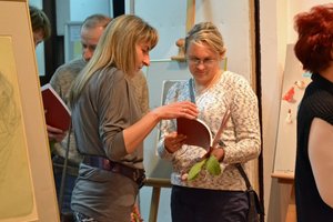 Wystawa traktująca o kobiecie i zatytułowana "O niej", zdradza najważniejsze wątki oraz inspiracje w twórczości artystki, których szuka m. in. w polskich podaniach i wierzeniach ludowych. Prezentacje kobiet na jej obrazach są bardzo dokładne, niemalże hiperrealistyczne. Intensywne światło odrealnia nieco postacie ujawniając, że pochodzą one z bardziej tajemniczego świata niż ten otaczający nas na co dzień. Jaskrawe oświetlenie zamiast uspokajać i odprężać, wzbudza niepokój, który często pogłębia jeszcze nietypowa perspektywa. Artystka nie kryje inspiracji sztuką Jacka Malczewskiego wyłaniając sylwetki ludzkie z polskiego pejzażu. Dopełnieniem płócien o dużych rozmiarach są litografie i kamienioryty, których motywem przewodnim jest matka i dziecko oraz śpiąca kobieta. Podczas wernisażu Marta Kunikowska-Mikulska odebrała kwiaty, życzenia i gratulacje od dyrekcji ośrodka kultury. Goście wernisażu otrzymali ekskluzywne katalogi malarstwa z imiennymi dedykacjami. Dodatkowo organizatorzy obdarowali wszystkie obecne na wernisażu panie symbolicznym tulipanem oraz życzeniami z okazji ich święta. Wystawę malarstwa i grafiki M. Kunikowskiej-Mikulskiej "O niej" oglądać można w MOK do końca kwietnia 2014. Zapraszamy!