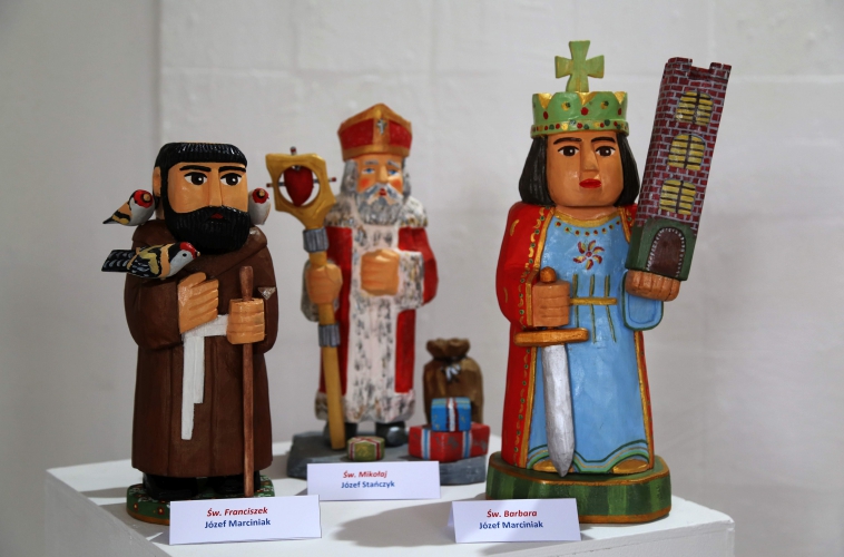 Tradycyjna rzeźba wyrosła z pobożności ludowej i obejmowała niemal wyłącznie te-matykę sakralną. Była tworzona przez świątkarzy wiejskich bądź pochodzących z małych mia-steczek na potrzeby ich macierzystego środowiska, zgodnie z lokalną tradycją i występującymi w niej wzorcami ikonograficznymi. Chrystus i Matka Boska – to postacie najważniejsze w katolicyzmie, mające w tradycji ludowej najwięcej siły duchowej, stąd poświęcono im większość rzeźb. Najczęstsze wzory ludowej rzeźby sakralnej to Chrystus Frasobliwy, Ukrzyżowany, Upadający pod krzyżem, a także Matka Boska z Dzieciątkiem i Pieta. Z postaci świętych najbardziej popularne wizerunki to św. Florian, św. Jan Nepomucen, św. Antoni, św. Barbara i św. Józef. To, co stanowiło o sile i wartości rzeźby ludowej, to uczłowieczenie boskich i świętych postaci.