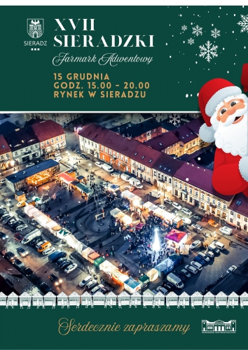 Sieradzkie Centrum Kultury oraz Urząd Miasta Sieradz zapraszają osoby indywidualne, placówki oświatowe, kulturalne, instytucje, firmy handlowe i gastronomiczne do udziału w XVII Sieradzkim Jarmarku Adwentowym. Zgłoszenia do 25 listopada 2024 r.