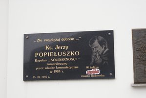 Przed rozpoczęciem przesłuchań na placu kolegiaty św. Lamberta pod tablicą pamięci ks. Jerzego Popiełuszki. złożone zostały kwiaty.
