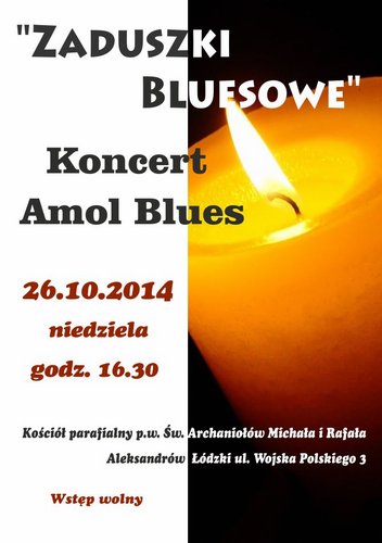 Partnerstwo na rzecz Aleksandrowa Łódzkiego zaprasza w najbliższą niedzielę 26 października o godz. 16.30 na Zaduszki bluesowe z zespołem Amol Blues, które odbędą się w kościele parafialnym pw. Św. Archaniołów Michała i Rafała w Aleksandrowie Łódzkim. Wstęp wolny!