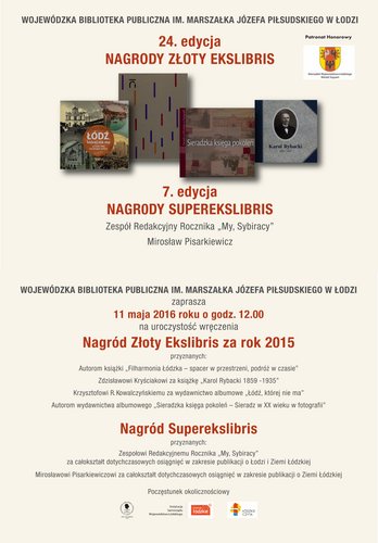 Wojewódzka Biblioteka Publiczna im. Marszałka Józefa Piłsudskiego w Łodzi już po raz 24. przyznała Nagrodę Złotego Ekslibrisu dla najlepszych publikacji o Łodzi i Ziemi Łódzkiej oraz po raz 7. Nagrodę Superekslibrisu za całokształt osiągnięć w zakresie publikacji o Łodzi i Ziemi Łódzkiej.