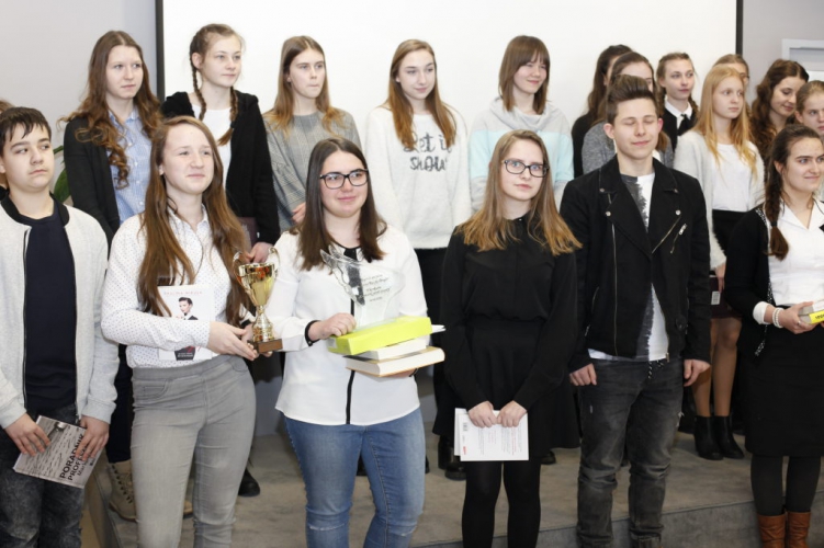 Zwyciężczyni konkursu, Justyna Olejnik, oprócz nagrody książkowej i pucharu "Mistrz języka ojczystego" dla swojej szkoły, otrzymała z rąk fundatora, p. Janusza Fenglera, piękną statuetkę oraz tablet - Nagrodę Specjalną im. Iwony Matejko-Fengler, zmarłej w 2016 roku polonistki.