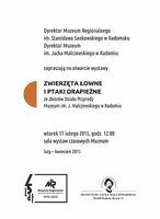 Muzeum Regionalne im. Stanisława Sankowskiego w Radomsku oraz Muzeum im. Jacka Malczewskiego w Radomiu serdecznie zapraszają na wystawę pt. „Zwierzęta łowne i ptaki drapieżne”, w dniu 17 lutego 2015 r. (wtorek), godz. 12.00, sala wystaw czasowych, Muzeum Regionalne w Radomsku, ul. Narutowicza 1.