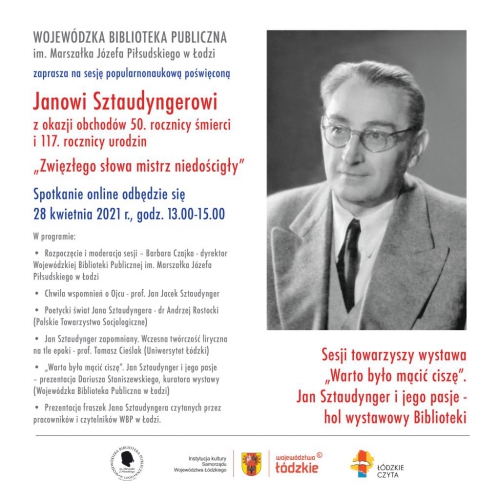 Wojewódzka Biblioteka Publiczna im. Marszałka Józefa Piłsudskiego w Łodzi zaprasza na sesję popularnonaukową „Zwięzłego słowa mistrz niedościgły” poświęconą Janowi Sztaudyngerowi z okazji obchodów 50. rocznicy śmierci i 117. rocznicy urodzin