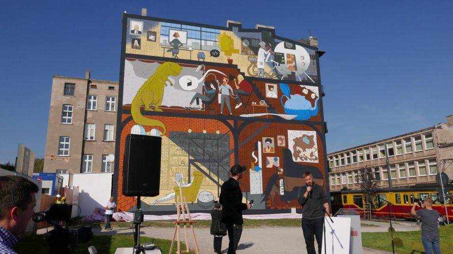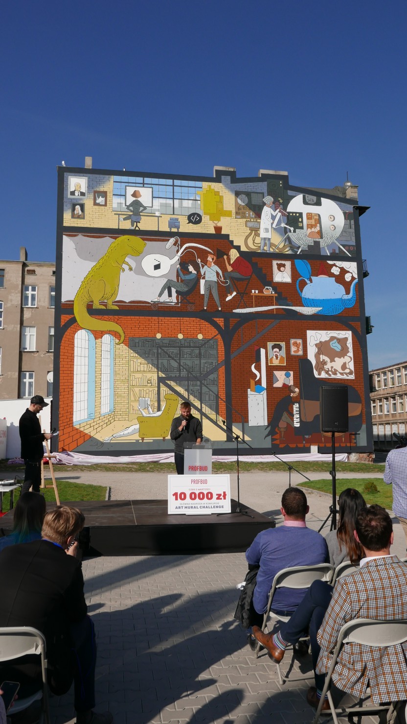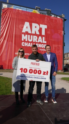 10 października to ważna data na mapie łódzkich, kulturalnych eventów. To właśnie w tym dniu odbyło się uroczyste odsłonięcie zwycięskiego muralu w konkursie Art Mural Challenge. Jego autorem jest Marcin Czaja, pracownik Wydziału Malarstwa Akademii Sztuk Pięknych im. Jana Matejki w Krakowie, twórca m.in. muralu inspirowanego twórczością Stanisława Lema na Galerii Krakowskiej. Pomysłowa koncepcja na nowe malowidło ścienne, jest odpowiedzią na motto konkursu – „Kocham Łódź”. Praca przedstawia przekrój kamienicy, a w niej ciekawe obrazy charakterystyczne dla Łodzi. Wyróżnia ją bogactwo szczegółów, potraktowanych z lekkim przymrużeniem oka. Atrakcyjną kompozycję utrzymano w komiksowej konwencji opowieści o Łodzi, jej historii i kulturze, co stanowi bezpośrednie odniesienie do festiwalu komiksu – istotnego dla Łodzian wydarzenia kulturalnego. Finałowy projekt zachwycił jury pod względem artystycznym, zgodności z tematyką konkursu, ekspozycji w kontekście otoczenia, a także spójności projektu ze specyfiką odbioru muralu w przestrzeni miejskiej. Zwycięzca osobiście nadzorował powstawanie muralu, a także odebrał nagrodę pieniężną w wysokości 10 000 zł, ufundowaną przez dewelopera Profbud, finansującego całe przedsięwzięcie. W wydarzeniu, którego gospodarzem był Krzysztof „Jankes” Jankowski wzięli udział przedstawiciele władz lokalnych Urzędu Miasta Łódź, Akademii Sztuk Pięknych w Łodzi, reprezentanci firm współpracujących z deweloperem Profbud oraz uczestnicy konkursu.