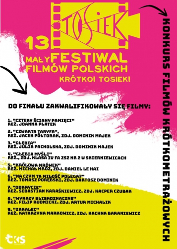 13. mały Festiwal Filmów Polskich TOSIEK nadchodzi! 24 – 27 października 2024 w Centrum Kultury i Sztuki w Skierniewicach.
