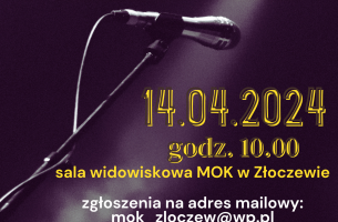 Miejski Ośrodek Kultury w Złoczewie zaprasza do udziału w 30. Festiwalu Piosenki Złoczew, który odbędzie się 14.04.2024 w sali widowiskowej MOK. Zgłoszenia do 22 marca.