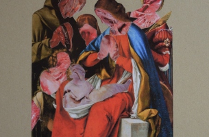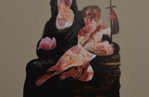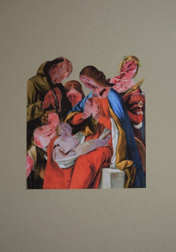 Pokazywane na wystawie „Symulakrum” prace Bartka Jarmolińskiego w swojej idei odnoszą się właśnie do próby stworzenia świata wyrażanego za pośrednictwem obrazów zapożyczonych, traktowanych jako forma, którą na nowo artysta wypełnia, przetwarza zachowując jednak stale łączność z obrazem początkowym, naśladując jego dawny kształt. W ten sposób powstały ze zderzenia dwóch warstw obraz może oddziaływać zarówno formą i treścią zaczerpniętą z „użytego” obrazu (w tym wypadku renesansowego czy antycznego), jak i współczesnymi treściami, które w owe formy zostały włożone. W wyniku tego rodzaju działań następuje demaskacja rozdźwięku między ideą dawną idealnego upostaciowania wizerunku człowieka, a rzeczywistością współczesną, realną - od ideału daleką.
