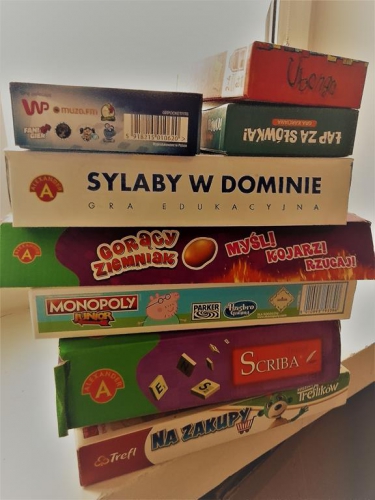 Na wstępie uczestnicy wysłuchali fragmentu jednego z opowiadań z książki „Opowiadania z uśmiechem - polscy pisarze dzieciom”. Następnie zagraliśmy w „Literowe kostki”. Do gry potrzebne były kostki z zapisanymi na nich literami. Na jednej znajdowały się samogłoski, na drugiej tylko spółgłoski. Gracze rzucali na zmianę dwiema kostkami, zapisywali w tabeli wylosowane litery i w ciągu minuty starali się zapisać jak najwięcej słów zaczynających się od wylosowanej spółgłoski i samogłoski. Dodatkowym zadaniem uczestników po zakończeniu gry było ułożenie zdań z podanymi przez siebie wyrazami. Na spotkaniu nie zabrakło także ulubionych gier planszowych, m.in. „Scriba”, „Monopoly”, „Kalambury” czy „Gorący ziemniak”, w które dzieci chętnie zagrały oraz czytania komiksów. To było bardzo miło spędzone popołudnie, pełne dobrej zabawy i uśmiechu.Warsztaty miały na celu zachęcenie dzieci do czytania, a także udoskonalenie tej umiejętności oraz układania zdań i bogacenie słownictwa uczniów, rozwijanie logicznego myślenia. Natomiast wspólne granie w „planszówki” zbliża dzieci i uczy bycia ze sobą. Pozwala zbudować dobre relacje oparte na ciepłych i pozytywnych emocjach. Zabawy z wykorzystaniem gier planszowych kształtują postawy koleżeńskie, uczą opanowania i cierpliwości, wyrabiają nawyki przestrzegania dyscypliny i reguł gry.