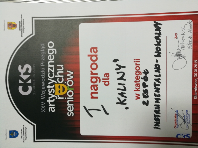 Wygrana kwalifikuje zespół "Kalina" do udziału w XVIX Ogólnopolskim Przeglądzie Artystycznego Ruchu Seniorów „ARS”, który odbędzie się w dniach 24-28 sierpnia 2020 roku w CK Browar „B” we Włocławku.