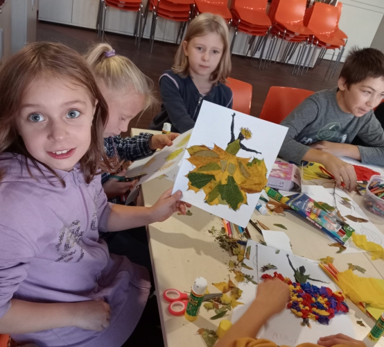 Podczas warsztatów, dzieci wykonały prace plastyczne wykorzystując liście kasztanowca, klonu i dębu. Zaprojektowały zakładki do książek, obrazki pani jesieni i inne ozdoby wykazując się pomysłowością i oryginalnością. Na zakończenie, porozmawialiśmy nie tylko o oznakach nowej pory roku, lecz także o liściach, ich kształtach i kolorach. Warsztaty miały na celu zainspirowanie kreatywności u młodych uczestników, rozwijanie zdolności plastycznych, kształtowanie estetyki i zainteresowania tą porą roku.Prace młodych uczestników można obejrzeć w bibliotece. Zapraszamy.