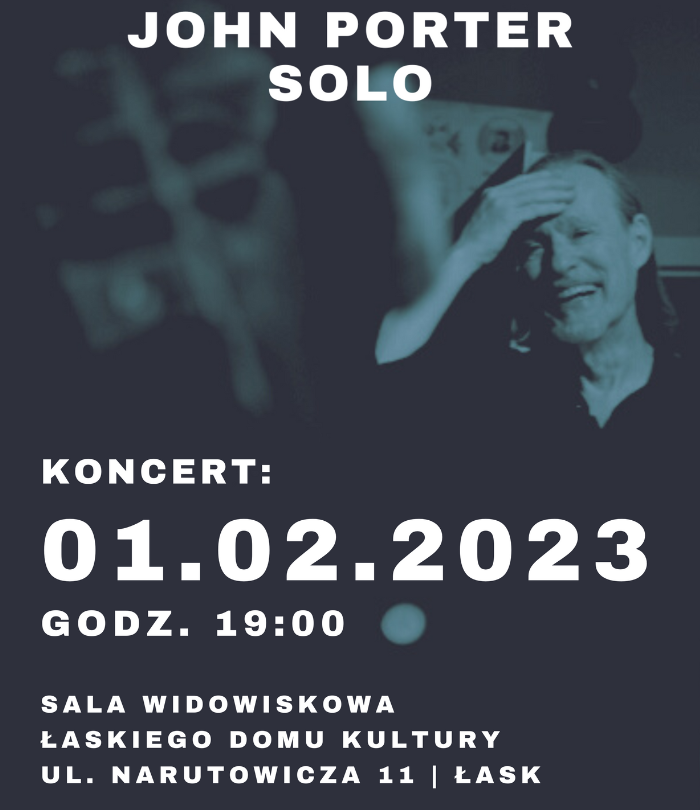 John Porter Solo – to zbiór utworów z ostatniego solowego krążka "Honey Trap", piosenki z legendarnej już płyty "Helicopters", z duetu z Anitą Lipnicką, a także projektów z Adamem Nergalem Darskim, Wojtkiem Mazolewskim, czy Alicją Domańską. Ostatnia płyta solowa Johna “HONEY TRAP” jest muzyczną kontynuacją wysoko ocenianego przez krytyków poprzedniego albumu wykonawcy “BACK IN TOWN” – jednocześnie drugim z planowanej trylogii spod znaku mrocznego rocka. Po raz kolejny artysta eksploruje skomplikowane relacje międzyludzkie, nasze ukryte lęki i obsesje przefiltrowane przez jego osobiste doświadczenie – tym razem jednak w zdecydowanie dynamiczniejszej, rockowo-bluesowej formie. „Mam swój The Who-Neil Young moment!” – wyznaje Porter.Szczegóły i bilety: https://laskidomkultury.com.pl/aktualnosci/john-porter-solo/