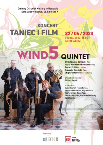22 kwietnia o godzinie 18.00 na scenie Gminnego Ośrodka Kultury w Rzgowie w "Koncercie Muzyki Filmowej" wystąpi zespół Wind5 Quintet. Artyści są solistami Filharmonii Łódzkiej i Teatru Wielkiego w Łodzi oraz pedagogami łódzkiej Akademii Muzycznej.