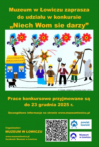 Muzeum w Łowiczu zaprasza do udziału w corocznym konkursie na kartkę świąteczno-noworoczną "Niech Wom sie darzy". Konkurs skierowany jest do mieszkańców Łowicza, Skierniewic oraz powiatów łowickiego i skierniewickiego zainteresowanych kulturą ludową.
