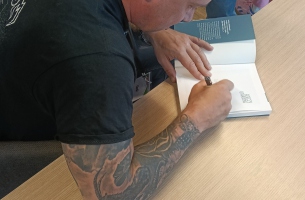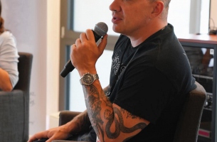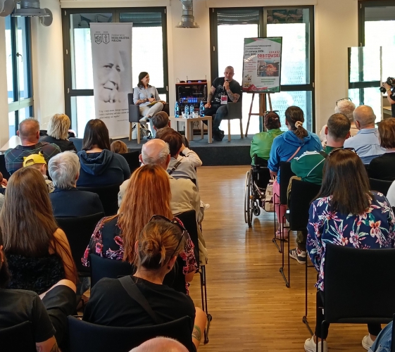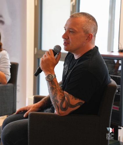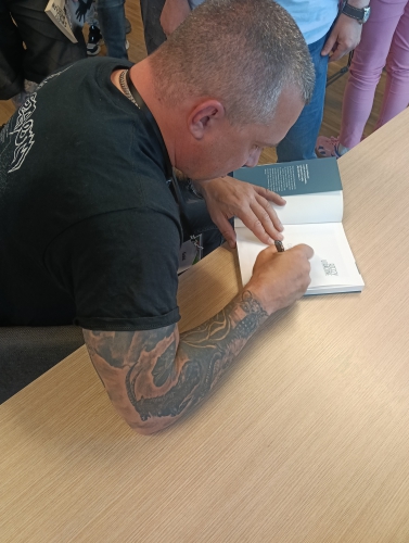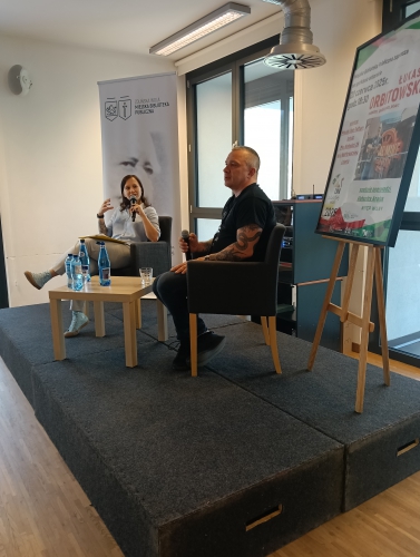 „Literatura to tajemnica” – spotkanie z Łukaszem Orbitowskim W trakcie wieczoru Orbitowski z charakterystyczną dla siebie swobodą i charyzmą opowiadał o swojej twórczości, zdradzając kulisy powstawania książek oraz dzieląc się refleksjami na temat literatury i życia. Publiczność miała okazję poznać proces twórczy autora – od pierwszych szkiców, przez budowanie bohaterów, aż po gotowe dzieło. Autor z dużą szczerością i otwartością mówił także o swoich pasjach, inspiracjach oraz podejściu do pisania. Podkreślał, że człowiek – ze swoją złożonością i tajemnicą – pozostaje dla niego nieustannym źródłem literackiego zainteresowania. Spotkanie zakończyło się rozmową z czytelnikami oraz podpisywaniem książek.