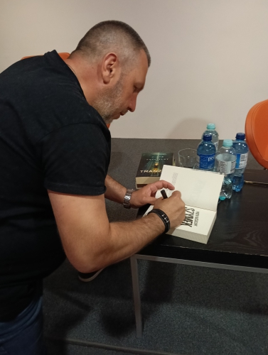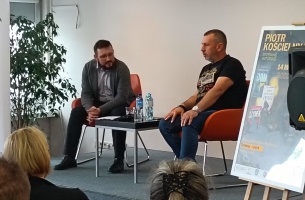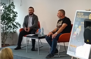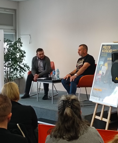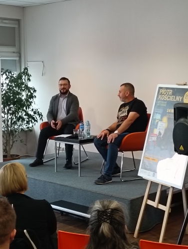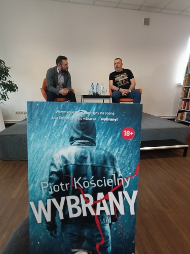 Wydarzenie przyciągnęło liczne grono czytelników, miłośników literatury sensacyjnej oraz sympatyków autora, którzy z zainteresowaniem wypełnili salę.Spotkanie poprowadził Marcin Kowalski, który w swobodny i błyskotliwy sposób poprowadził rozmowę z pisarzem. Rozmowa dotyczyła zarówno najnowszych publikacji Piotra Kościelnego, jak i kulis powstawania jego książek. Autor opowiadał o inspiracjach, swojej drodze pisarskiej oraz o pracy nad dokumentacją do powieści, które często opierają się na prawdziwych wydarzeniach. Nie zabrakło także pytań od publiczności – uczestnicy chętnie dopytywali o proces twórczy, ulubione książki autora i plany na przyszłość. Piotr Kościelny z humorem i otwartością odpowiadał na wszystkie pytania, dzieląc się ciekawostkami i anegdotami ze swojego życia zawodowego. Po oficjalnej części spotkania przyszedł czas na autografy i indywidualne rozmowy z autorem. Wielu uczestników skorzystało z okazji, by zamienić kilka słów z pisarzem i zdobyć podpis do swojej książkowej kolekcji. Spotkanie z Piotrem Kościelnym było nie tylko okazją do bliższego poznania autora, ale także inspirującym wydarzeniem, które z pewnością na długo pozostanie w pamięci uczestników.