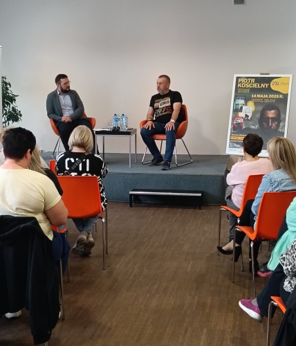 14 maja w Miejskiej Bibliotece Publicznej im. Jerzego Szaniawskiego w Zduńskiej Woli, odbyło się spotkanie autorskie z Piotrem Kościelnym – cenionym autorem kryminałów i reportaży.