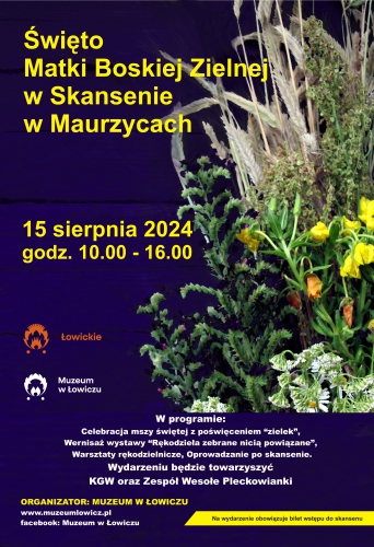 Muzeum w Łowiczu zaprasza 15 sierpnia do Skansenu w Maurzycach na wydarzenia przygotowanie z okazji Święta Matki Boskiej Zielnej.
