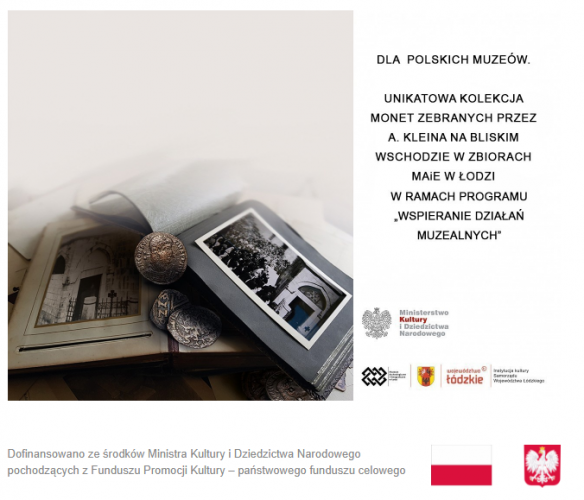 Muzeum Archeologiczne i Etnograficzne w Łodzi otrzymało dofinansowanie w ramach zadania "Dla polskich muzeów". Unikatowa kolekcja monet zebranych przez A. Kleina na Bliskim Wschodzie w zbiorach MAiE w Łodzi.
