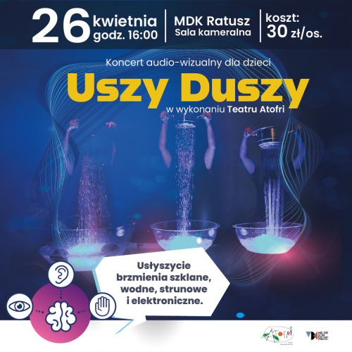 Usłyszycie brzmienia szklane, wodne, strunowe i elektroniczne. Dźwięk, światło i obraz będą się nawzajem uzupełniały tworząc rodzaj teatru instrumentalnego. Spytacie czy dzieci będą chciały słuchać koncertu muzyki współczesnej? Bliska dzieciom zabawa i eksperymentowanie będzie naszym przewodnikiem w poszukiwaniu ciekawych, nowatorskich kompozycji – miniatur na nieoczywiste instrumenty. Wsłuchamy się w to, co nam i dzieciom w duszy gra!Koncert odbędzie się 26 kwietnia 2026 r. o godz. 16:00 w sali kameralnej MDK Ratusz w Zduńskiej Woli