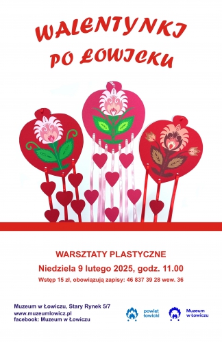 Muzeum w Łowiczu zaprasza na warsztaty plastyczne „WALENTYNKI PO ŁOWICKU” w niedzielę 9 lutego 2025 r. o godz. 11.00. W trakcie zajęć uczestnicy wykonają walentynkowy prezent z motywem łowickiej wycinanki.
