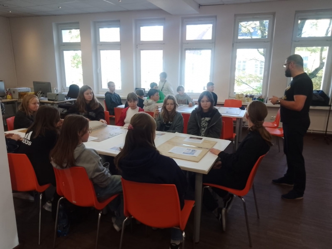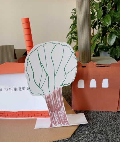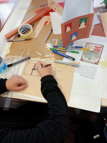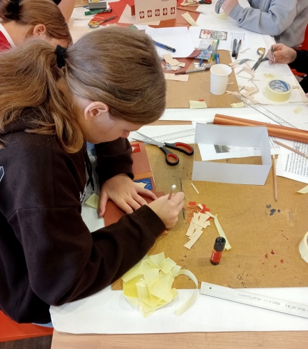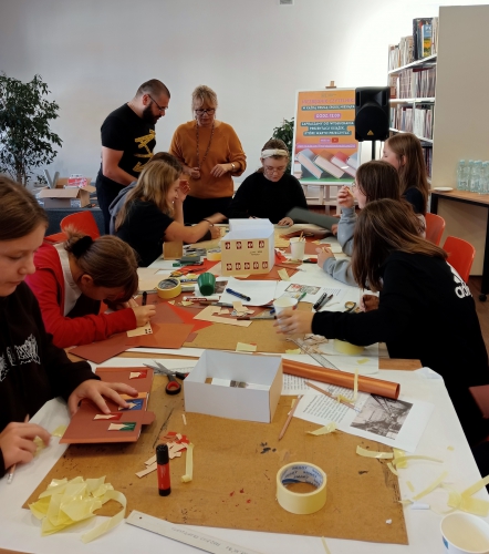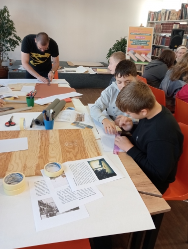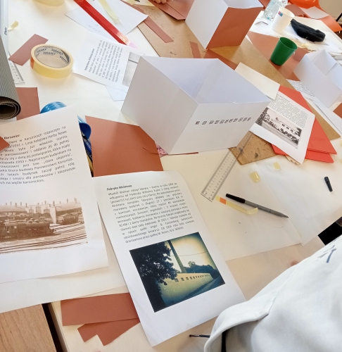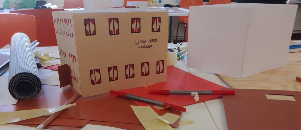 Warsztaty rozpoczęły się od wprowadzenia teoretycznego, które miało na celu zapoznanie uczestników z podstawowymi zasadami oraz technikami budowy makiety. Prelegent omówił różne rodzaje makiet, takie jak architektoniczne, urbanistyczne czy krajobrazowe zwracając uwagę na ich zastosowanie oraz znaczenie w planowaniu i wizualizacji projektów. Następnie uczniowie wcielili się w rolę architektów i budowniczych, trenowali swoje umiejętności manualne, modelowanie, myślenie przestrzenne i kreatywność używając do budowy różne materiały, m.in. karton, tekturę, papier karbowany i kolorowy. Dzięki starannemu odwzorowaniu szczegółów, młodzi ludzie przenieśli się w czasie odkrywając bogatą historię swojego miasta z XIX wieku. Makieta stała się nie tylko edukacyjnym narzędziem, ale również ważnym elementem w budowaniu wspólnej tożsamości i świadomości historycznej wśród młodych ludzi.Zajęcia zatytułowane „Fabryczna Zduńska Wola” poprowadził Marcin Grabia, nauczyciel z Państwowego Liceum Sztuk Plastycznych w Zduńskiej Woli.