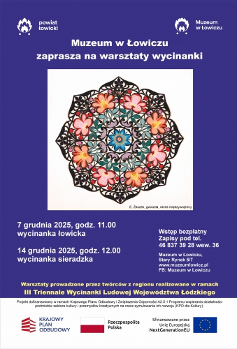 Warsztaty są realizowane w ramach III Triennale Wycinanki Ludowej Województwa Łódzkiego dofinansowanego w ramach Krajowego Planu Odbudowy i Zwiększania Odporności A2.5.1 Programu wspierania działalności podmiotów sektora kultury i przemysłów kreatywnych na rzecz stymulowania ich rozwoju (KPO dla Kultury)