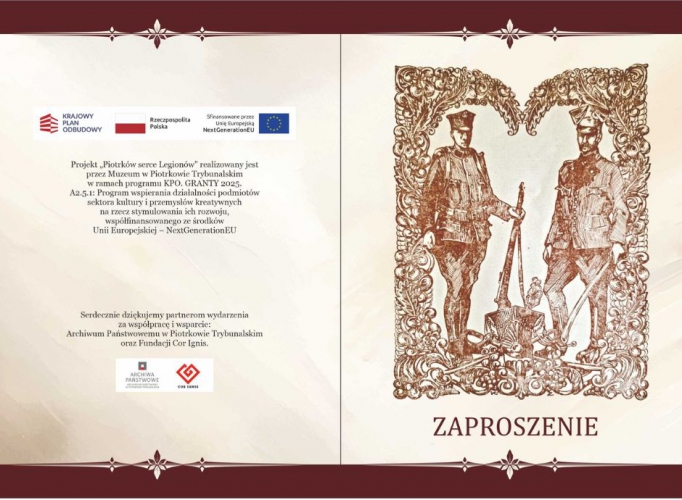 Muzeum w Piotrkowie Trybunalskim zaprasza na wernisaż wystawy „Piotrków – serce Legionów”, który odbędzie się 11 stycznia 2026 r. (niedziela) o godz. 17:00 w siedzibie Muzeum przy Placu Zamkowym 4, w historycznych wnętrzach dawnego Zamku Królewskiego.