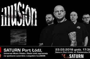 W najbliższy piątek, 23 marca, sklep SATURN i PRESSCOM zapraszają na spotkanie z polskim zespołem rockowym Illusion. Formacja będzie w Łodzi promować swoją długo wyczekiwany album - "ANHEDONIA". Podczas spotkania, które poprowadzi znany dziennikarz radiowy – Darek Król, będzie można porozmawiać z muzykami o najnowszym albumie, a także zdobyć ich autograf.