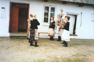 Dyngusiarze dostawali od gospodarzy w darze jajka, placek, kiełbasę, rzadziej pieniądze, niekiedy też częstowani byli wódką. Za otrzymane dary dziękowali, śpiewając podobną pieśń jak dziewczęta chodzące z gaikiem. Trzeba zaznaczyć, że dary były jakby ofiarą – zapowiedzią przyszłych plonów, dlatego zwyczajowo ich nie żałowano. Zwyczaj ten związany był oczywiście z oblewaniem wodą. Dyngusiarze zaopatrzeni w drewniane sikawki polewali gospodarzy wodą, życząc im przy tym dobrego urodzaju, ale głównie polewali dziewczęta mieszkające w zagrodzie – te nie pozostawały im dłużne, więc woda lała się obficie. Jako że dyngusiarzami byli młodzi nieżonaci mężczyźni, odwiedzali przede wszystkim gospodarstwa, gdzie mieszkały panny na wydaniu. Tam też obchody dyngusowe kończyły się zabawą.