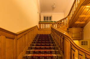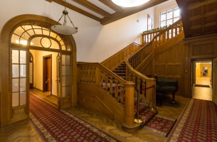 Alfred wybudował pałac wraz z zabudowaniami gospodarczymi ,stróżówką i wozownią , prawdopodobnie w miejscu istniejącego tu wcześniej parterowego domu zbudowanego jeszcze przez Roberta Biedermanna. Pałac otacza okazały ogród - park otoczony żeliwnym płotem.