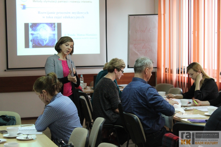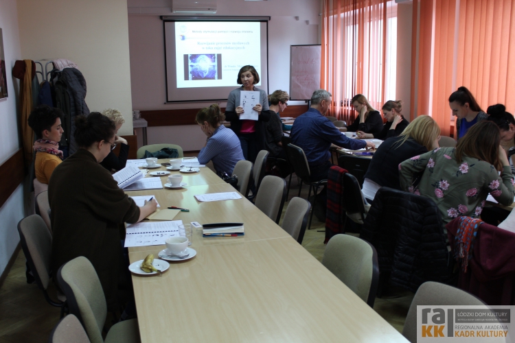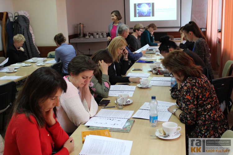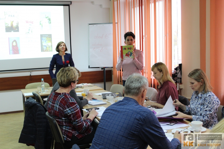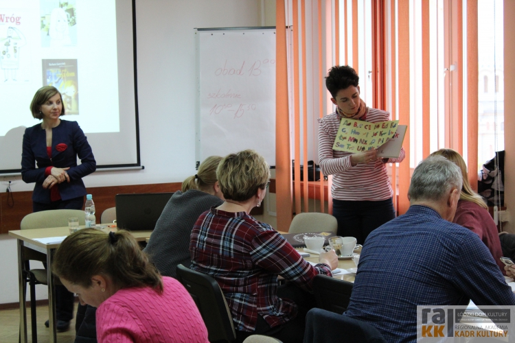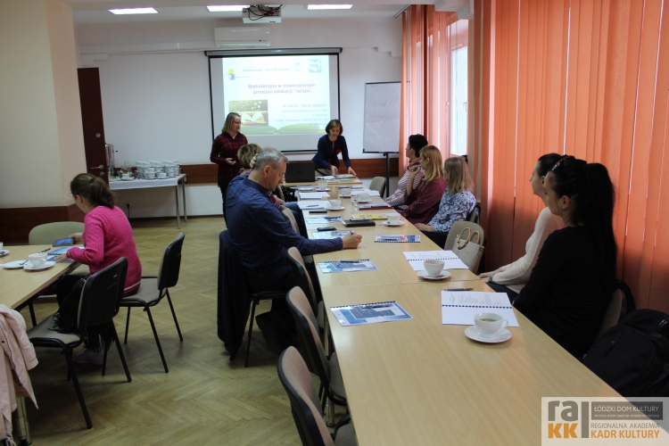 W szkoleniu wzięło udział kilkunastu pracowników instytucji kultury z województwa łódzkiego, którzy pogłębili swoją wiedzę na temat doboru i możliwości wykorzystania odpowiednich tekstów edukacyjnych i terapeutycznych adresowanych do wszystkich grup wiekowych. Warsztaty rozwinęły ich umiejętności samodzielnego prowadzenia zajęć biblioterapeutycznych z elementami arteterapii. Podczas szkolenia prowadząca poruszyła zagadnienie storytellingu, czyli czytania performatywnego tekstów literackich, oraz wykorzystania dramy i innych form teatralnych w działaniach biblioterapeutycznych. Zaprezentowany został potencjał terapeutyczny metafor w utworach literackich oraz techniki biblioterapeutyczne zmierzające do uaktywnienia intelektualnego uczniów. Nie zabrakło również czasu na omówienie wykorzystania literatury do rozwijania twórczego podejścia do edukacji historycznej czy nauki asertywności dla dziewcząt. Zajęcia poszerzyły ponadto wiedzę uczestników z zakresu doboru i wykorzystania odpowiedniej literatury dla osób niechętnie czytających, z zaburzeniami dysleksji, ADHD oraz dla czytelników niepełnosprawnych i borykających się z różnymi problemami i lękami.