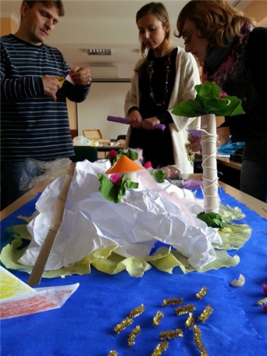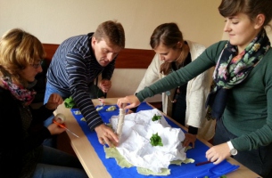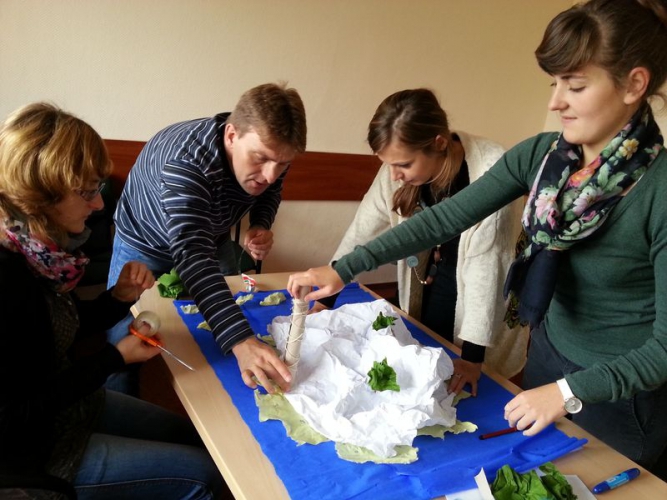 W czasie szkolenia 27 września 2013 r. uczestnicy poznali 5 podstawowych czynników twórczego myślenia, które stały się punktem wyjścia do wymyślania ćwiczeń, gier i zabaw, które można wykorzystać w czasie zajęć teatralnych, tanecznych, muzycznych, plastycznych i wszelkich innych nazywanych artystycznymi.Po serii ćwiczeń rozgrzewkowych "grupy badaczy" opisały wygląd i właściwości tajemniczej rośliny, która okazała się być zwierzęciem, poszukiwali odpowiedzi na to, co stało się z pewną łodzianką poprzez elementy dramy i tworzyli swoje wymarzone miejsce do mieszkania. Wspaniale poradzili sobie również ze śpiewaniem piosenek o jesieni, w których jesień nie występuje.