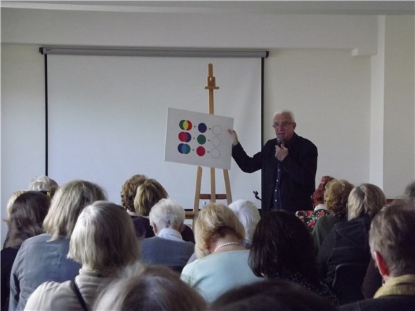 Sobotnie przedpołudnie uświetnił wykład prof. Ryszarda Hungera pt. Wprowadzenie do wiedzy o kolorze - naukowe aspekty koloru. Słuchacze zostali wprowadzeni w tajniki wiedzy o postrzeganiu barw i ich nomenklaturze.W drugiej części spotkania pod okiem artysty plastyka Jacka Świgulskiego, uczestnicy wykonywali ćwiczenia malarskie inspirowane technikami twórczego myślenia.