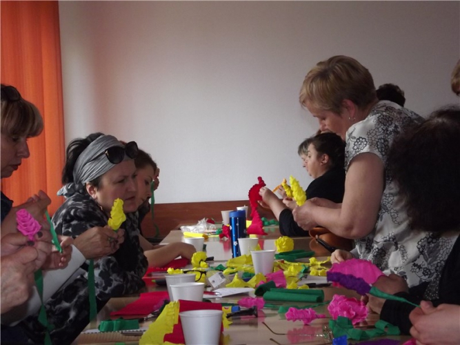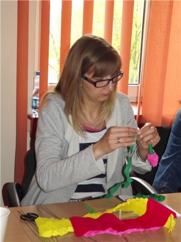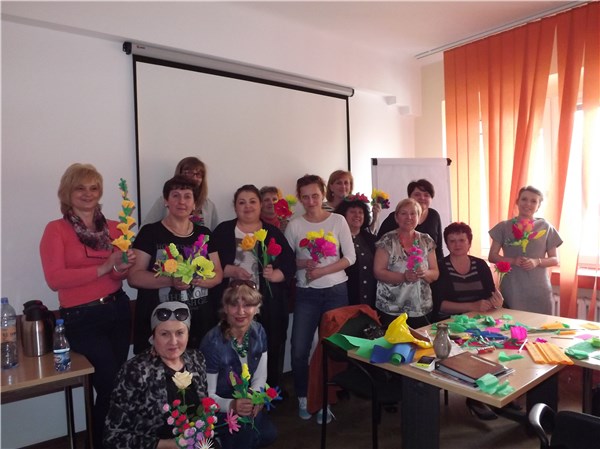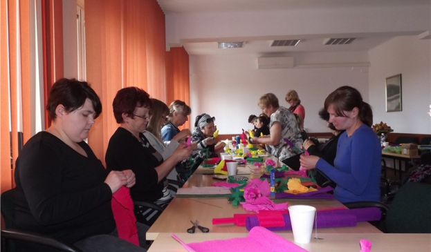 Szkolenie poprowadziła p. Hanna Kuberska Skrzydło - instruktorka warsztatów twórczości ludowej. W niezwykle interesujący sposób przybliżyła uczestniczkom cechu ludowego zdobnictwa i jego obecność w obrzędowości dorocznej i rodzinnej. Dalszy ciąg szkolenia upłynął na zapoznaniu się z technikami wykonania kwiatów tradycyjnych. Pośród wykonanych kwiatów znalazły się: róża, malwa, mak.Kolejne szkolenie będzie poświęcone łowickiej wycinance. Szczegóły wkrótce.