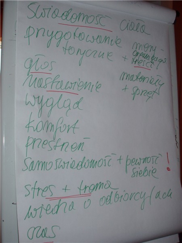 Uczestnicy Regionalnej Akademii Kadr Kultury na własnej skórze przetestowali narzędzia przygotowujące do wystąpień publicznych. Tak strasznie chyba nie było, gdyż cały czas na buziach malował się uśmiech. Różnorodne ćwiczenia i konstruktywna informacja zwrotna pozwoliły im na zwiększenie świadomości w zakresie publicznego przemawiania, a co za tym idzie podniesienie jakości ich wypowiedzi.